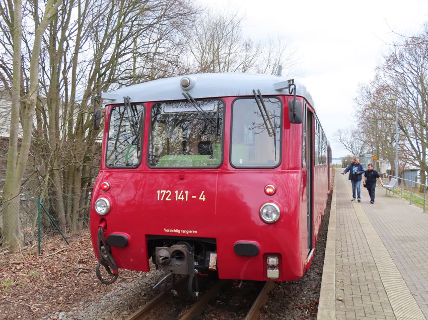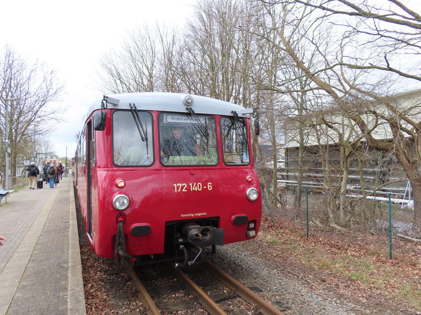 | Der Regelzug aus Bergen mit der Doppeltraktion 172 140 und 172 141 ist angekommen. Die