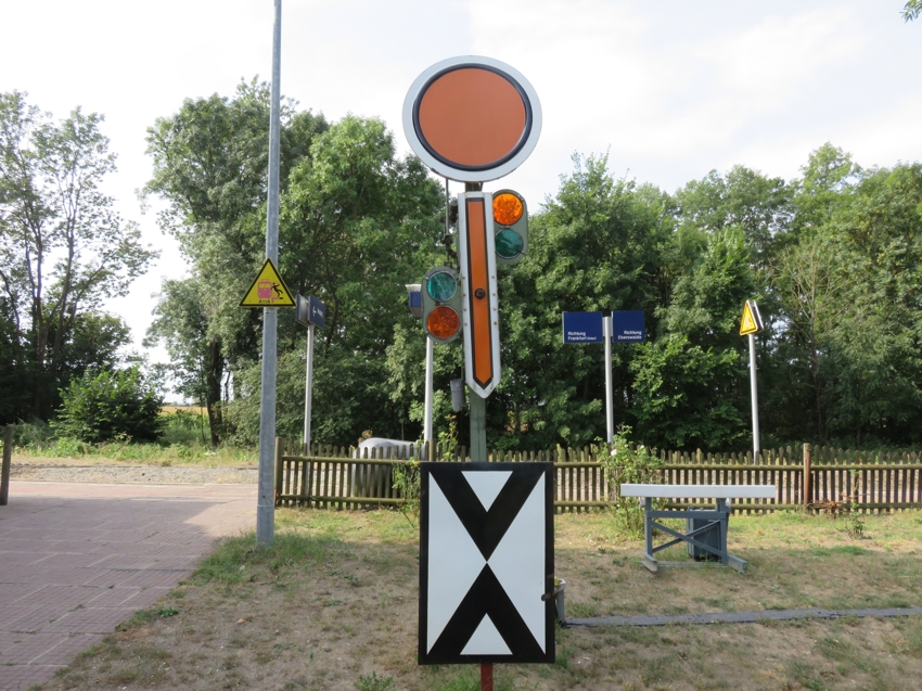 für den folgenden BÜ hinter den Bahnsteigen in Richtung Wriezen. Da der BÜ vom Zugpersonal eingeschaltet werden muss, hat dieses Üs keine Optik für das Signal Bü 1. |