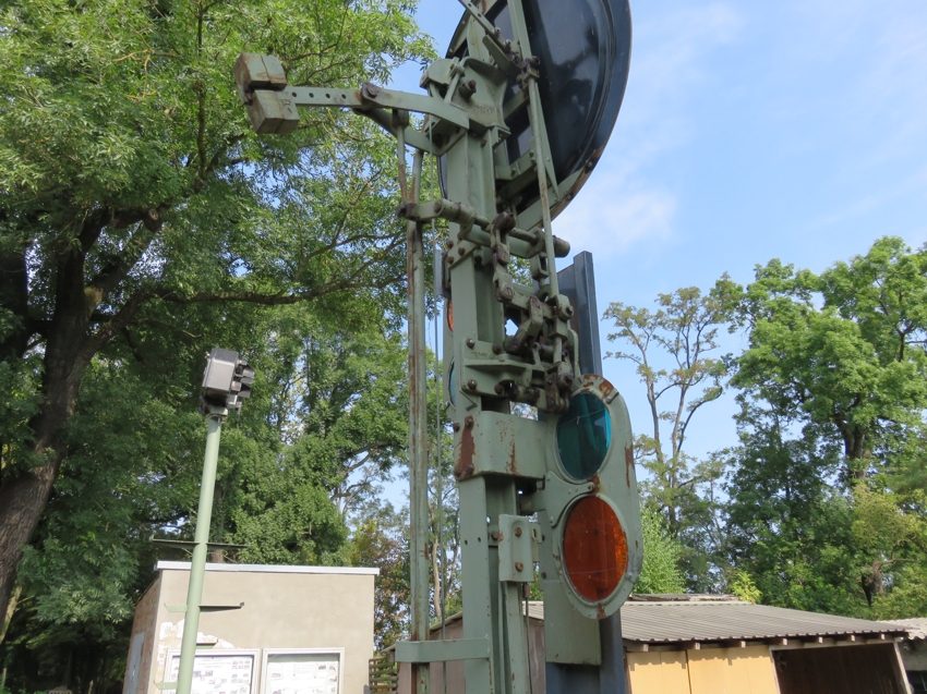 | Am Bahnsteigzugang stehen weitere Ausstellungsobjekte: Hier ein dreibegriffiges Formvorsignal |