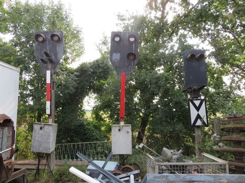 | links und Mitte: 2 ehemalige Sv-Signale der Berliner S-Bahn, rechts: Hl-Vorsignal |
