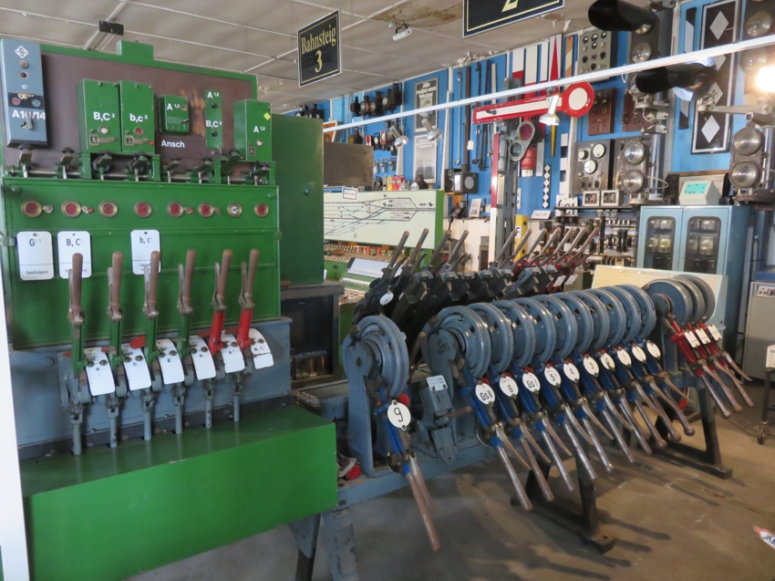 gerade als ich wieder wegfahren wollte, kam der Vereinsvorsitzende um wohl nach dem Rechten zu sehen. Vermutlich hatte mich jemand gesehen und ihn verständigt. Wir kamen kurz ins Gespräch und er bot mir eine kleine Führung durch die Halle an. Ich war total überwältigt von den vielen Ausstellungsstücken, besonders der zahlreichen Stellwerke. Vielen, vielen Dank an dieser Stelle noch einmal von dieser Stelle aus! |