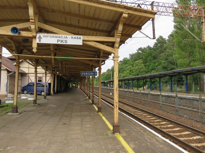 | Bahnhof in Polen auf der Insel Wolin   Strecke: Szczecin Dąbie - Wysoka Kamieńska - Świnoujście - Świnoujście Port [po niemiecku/auf deutsch: Altdamm - Wietstock (Pom) - Ostswine] |