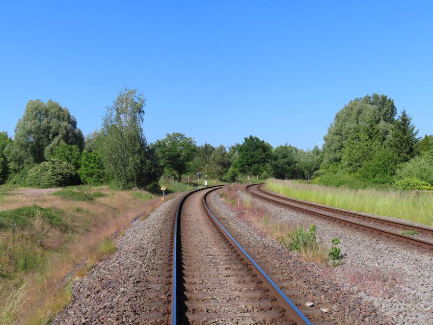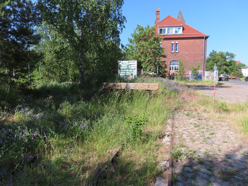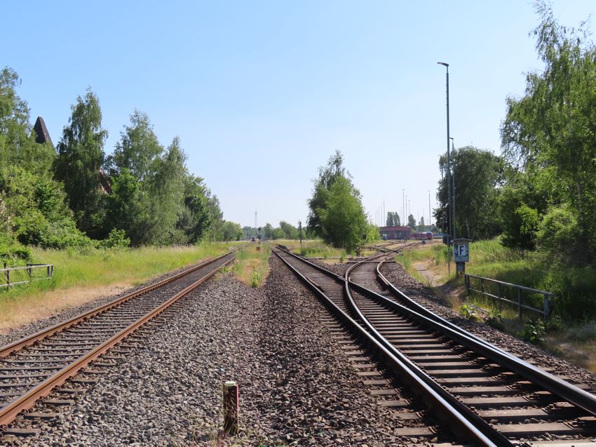 | ... und vom ehemaligen Bahnsteig 1 in Richtung Rheinsberger Tor |