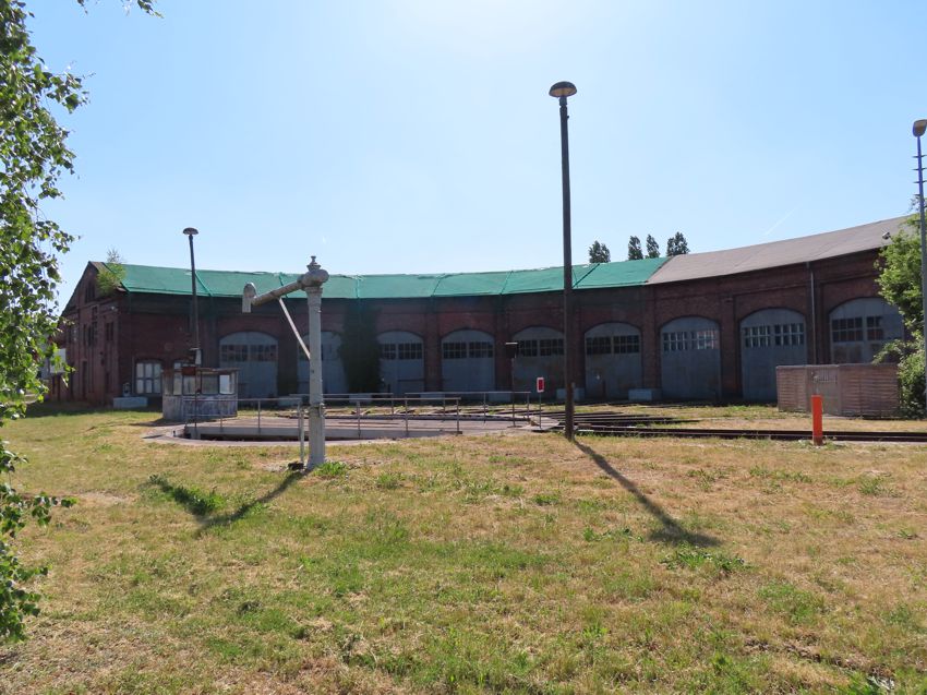 | ehemaliges Bw mit dem Ringlokschuppen, dahinter die noch heute von DB Regio genutzten