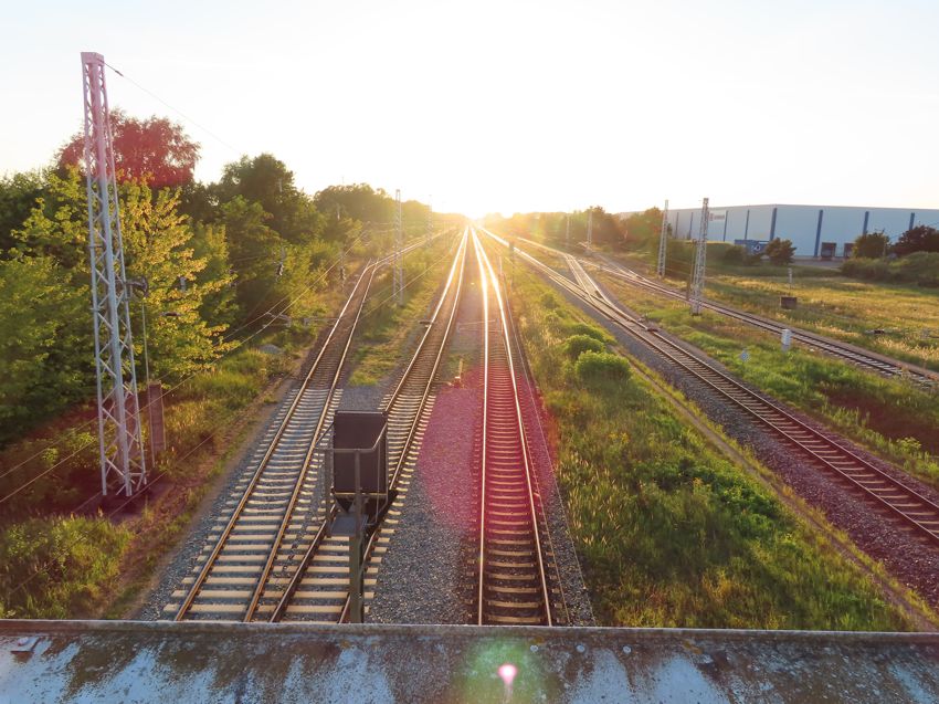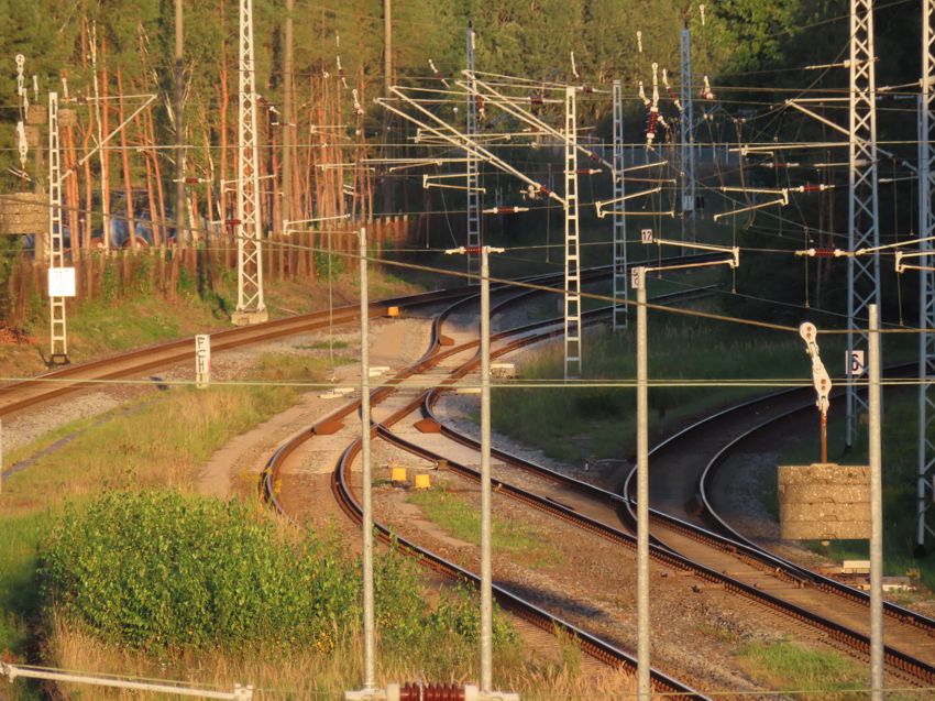 | ![]() Das linke Gleis ist das durchgehende Hauptgleis der Hauptbahn Lübeck - Strasburg,