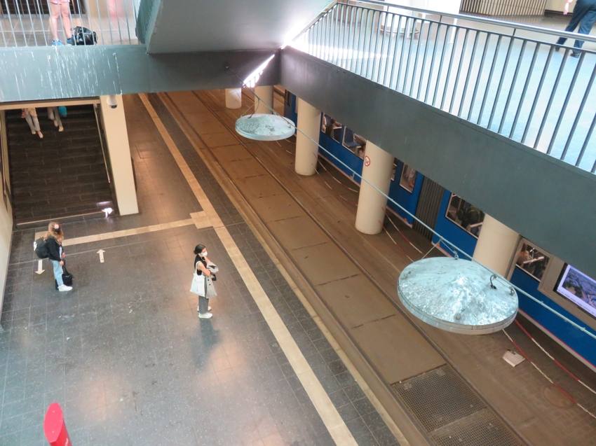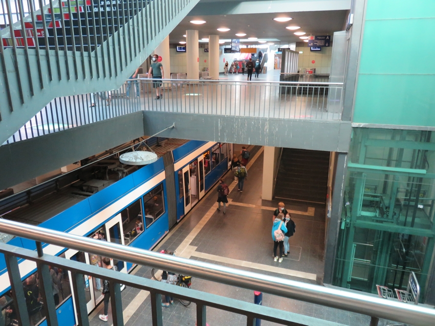 Blick von der Ebene des Personentunnels auf eine Bahn in Richtung Südstadt ... |