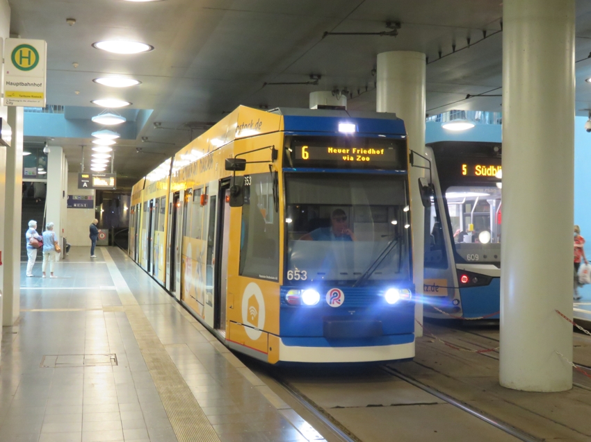 Die Straßenbahn im Bahnhof   |