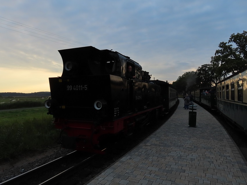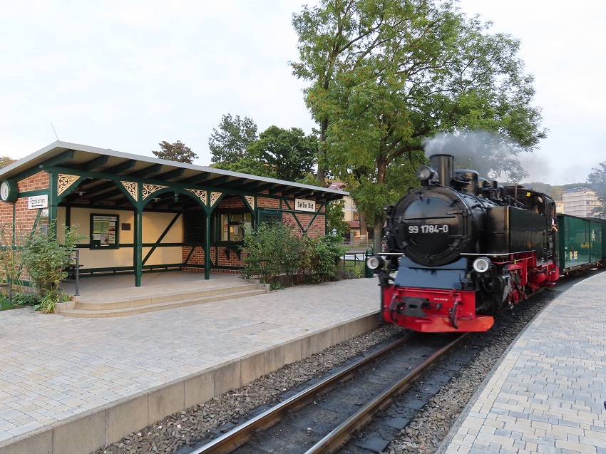 Sellin ist in der Saison Kreuzungsbahnhof der Züge Putbus ↔ Göhren und Göhren ↔ Binz. |