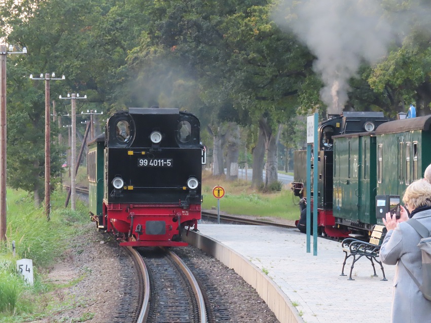 Nachdem der erste Zug eingefahren ist, darf der Zug aus Binz vorsichtig ein