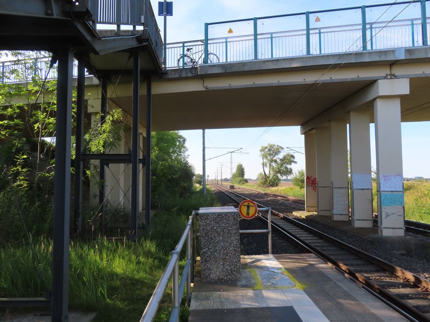| Haltepunkt in Mecklenburg (ursprünglich Haltestelle, ab 1941 bis zum zweigleisigen Streckenausbau Bahnhof)   Strecke: Neustrelitz - Plaaz - Rostock - Warnemünde [Lloydbahn] |
