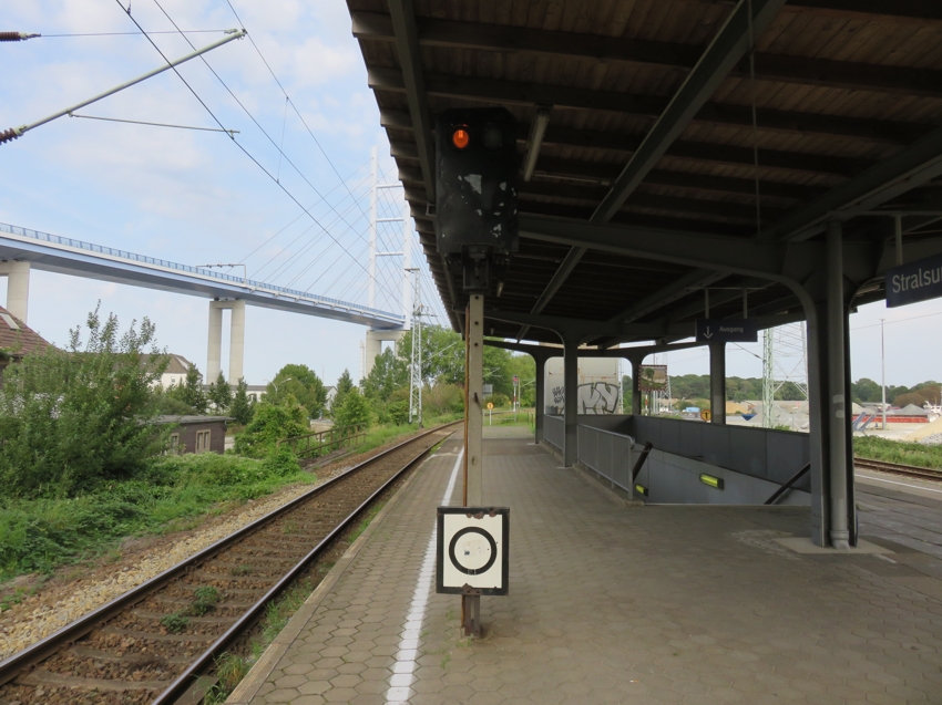 | der Inselbahnsteig mit Blick in Richtung Dänholm |