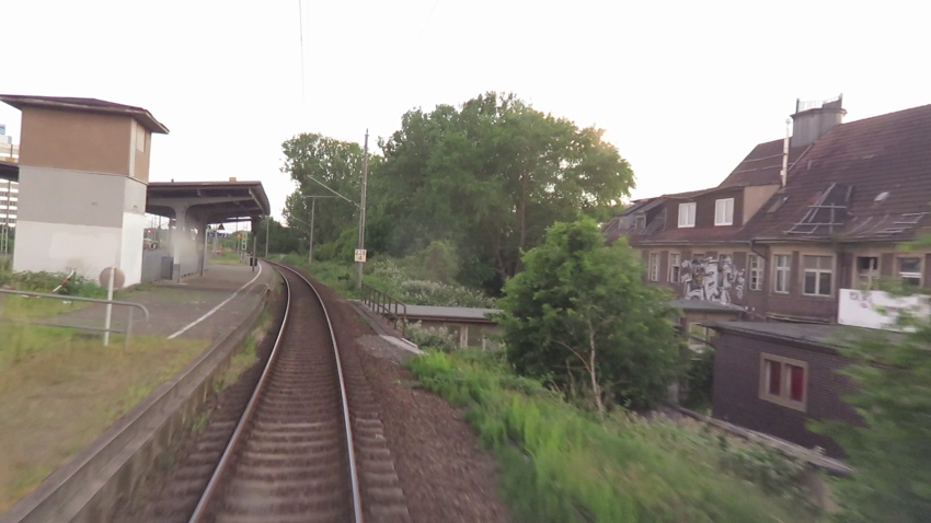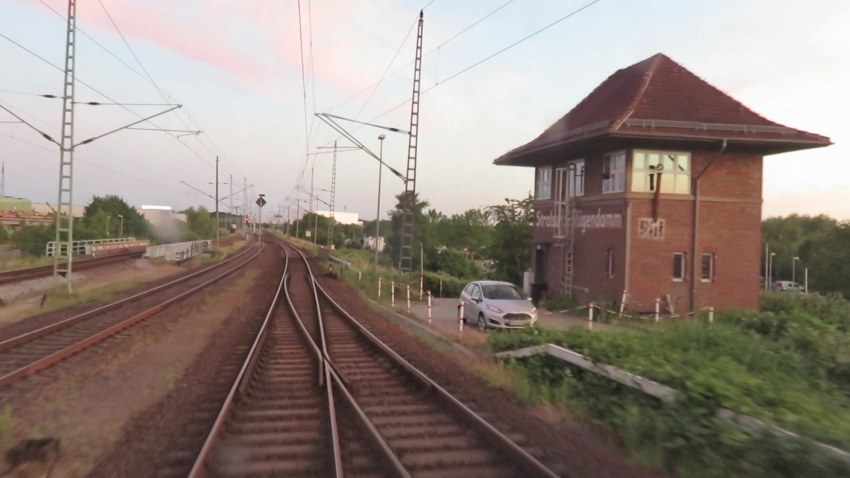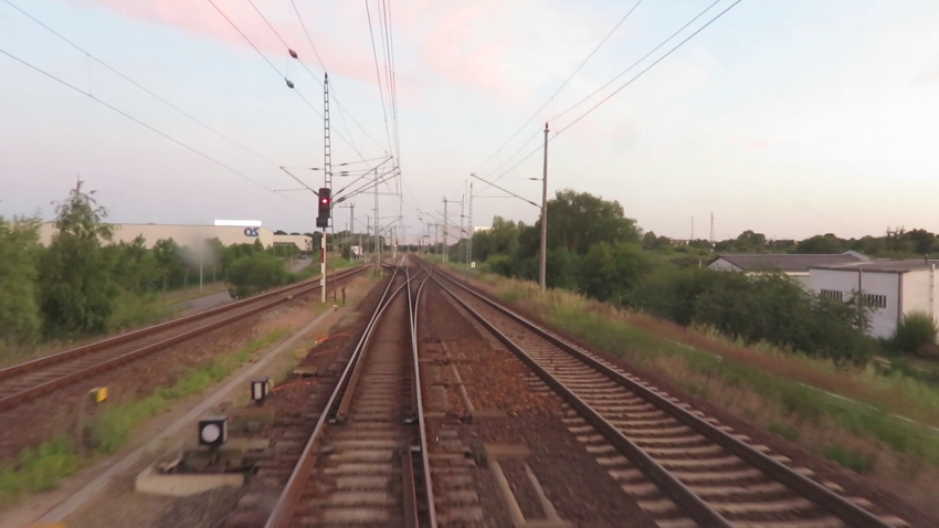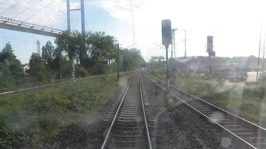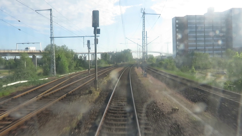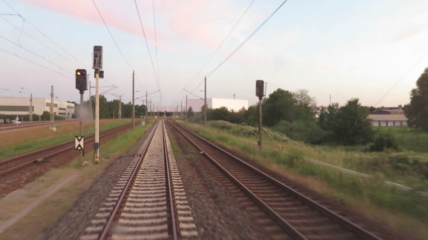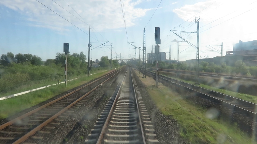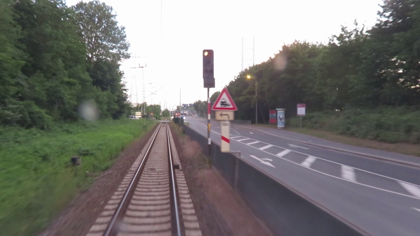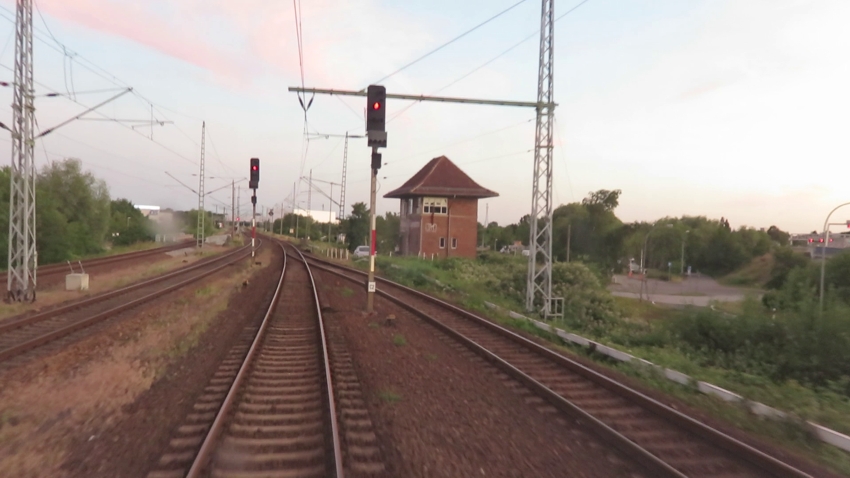 | Eine Fahrt aus der Gegenrichtung: vorbei am Einfahsignal F |