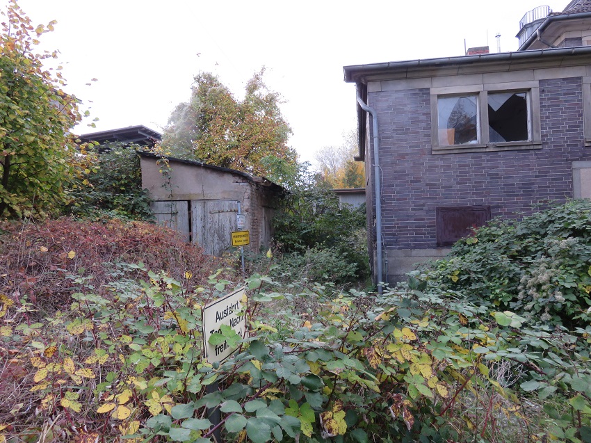 | Hinter den Büschen zwischen der Garage und dem EG ist der Verbindungsbau zu erkennen. |