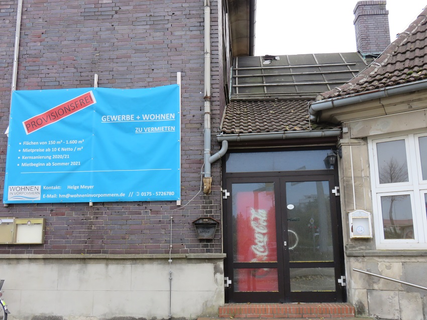 | Wie lange dieses Werbeplakat dort wohl schon hängt? Wenn diese Firma wirklich noch Mieter für dieses Objekt sucht, na dann gute Nacht! Aber auf deren Internetseite ist das EG nicht mehr aufgeführt. |