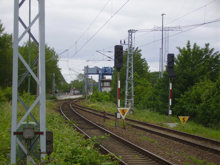 | Einfahrt Rügendamm vom Hbf in Richtung Altefährt |